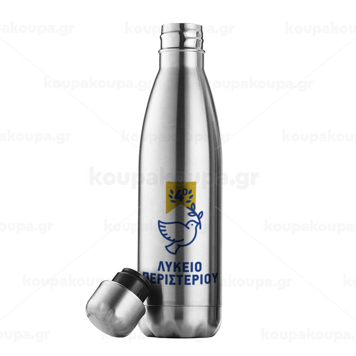 Έμβλημα Σχολικό μπλε/χρυσό περιστέρι, Μεταλλικό παγούρι θερμός Inox (Stainless steel), διπλού τοιχώματος, 500ml