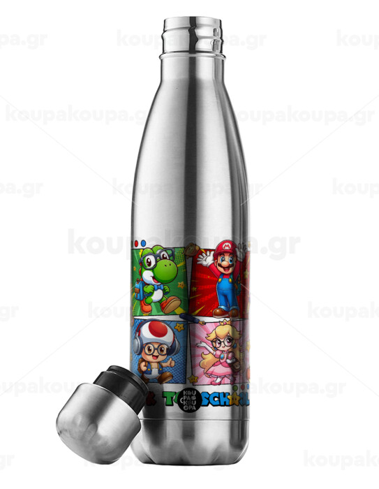 Back to the School Mario & Friends, Μεταλλικό παγούρι θερμός Inox (Stainless steel), διπλού τοιχώματος, 500ml