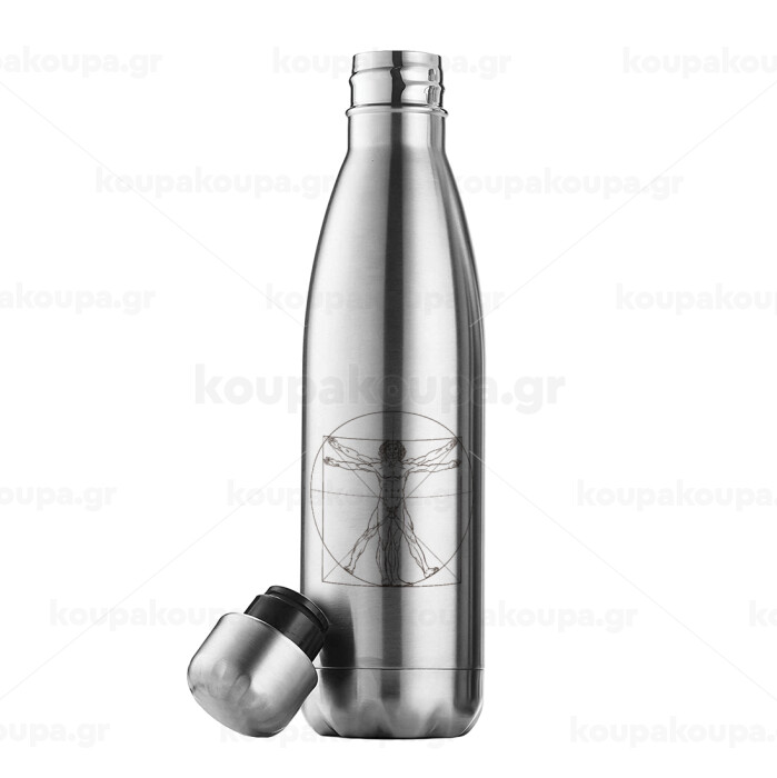 Leonardo da vinci Vitruvian Man, Μεταλλικό παγούρι θερμός Inox (Stainless steel), διπλού τοιχώματος, 500ml