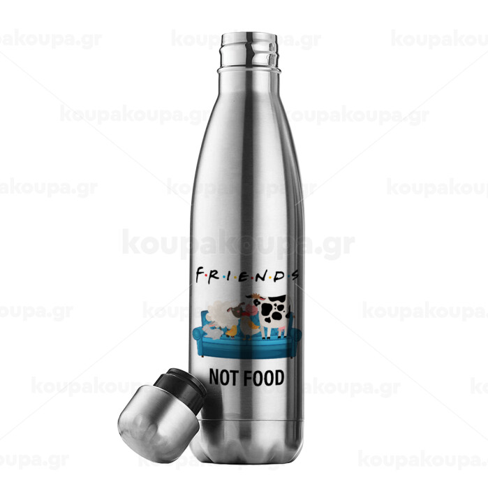 friends, not food, Μεταλλικό παγούρι θερμός Inox (Stainless steel), διπλού τοιχώματος, 500ml