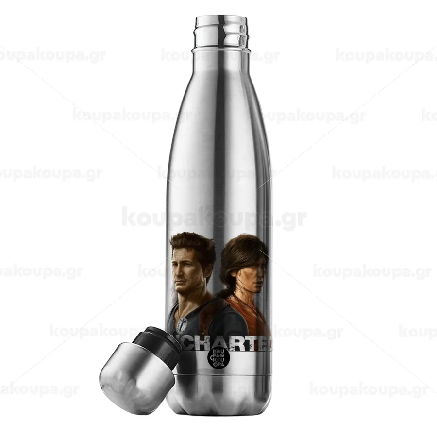 Uncharted, Μεταλλικό παγούρι θερμός Inox (Stainless steel), διπλού τοιχώματος, 500ml