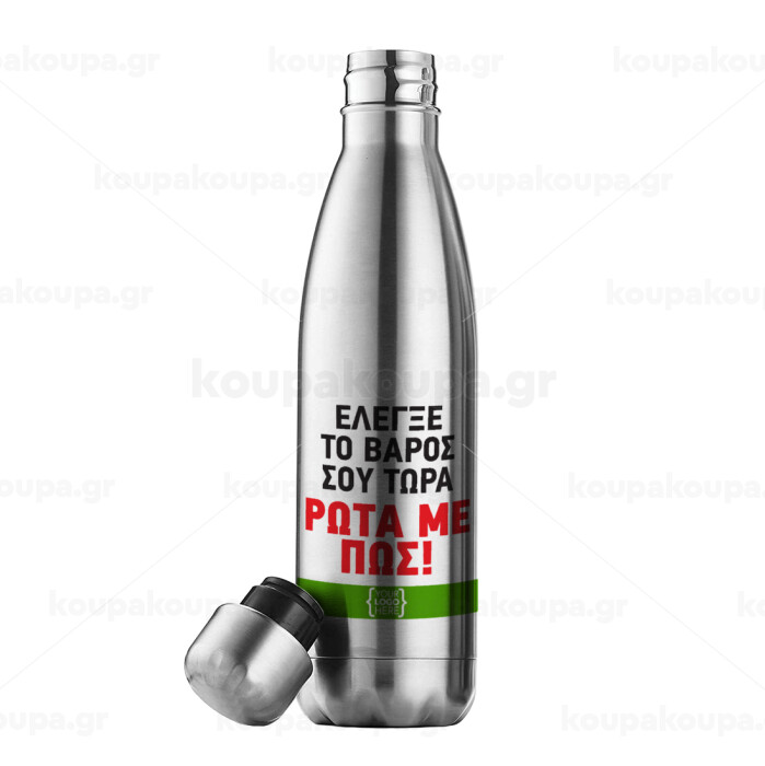 Έλεγξε το βάρος σου ρώτα με πως! {your logo here}, Μεταλλικό παγούρι θερμός Inox (Stainless steel), διπλού τοιχώματος, 500ml