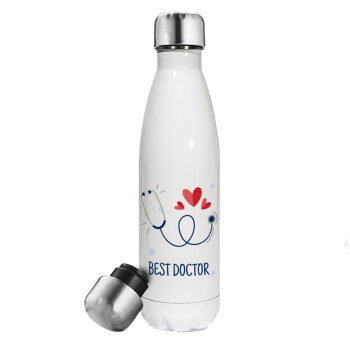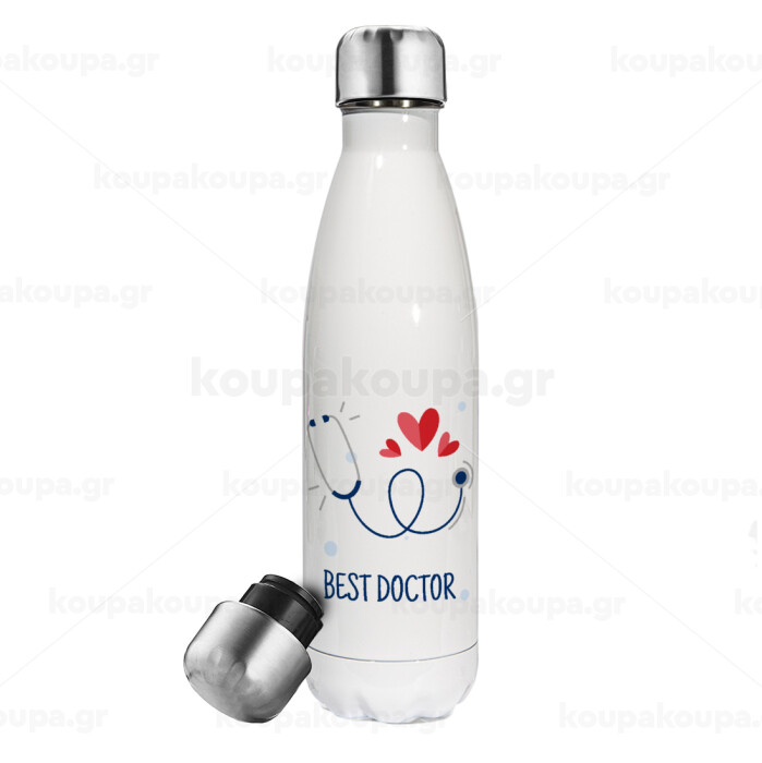 Best Doctor, Μεταλλικό παγούρι θερμός Λευκό (Stainless steel), διπλού τοιχώματος, 500ml