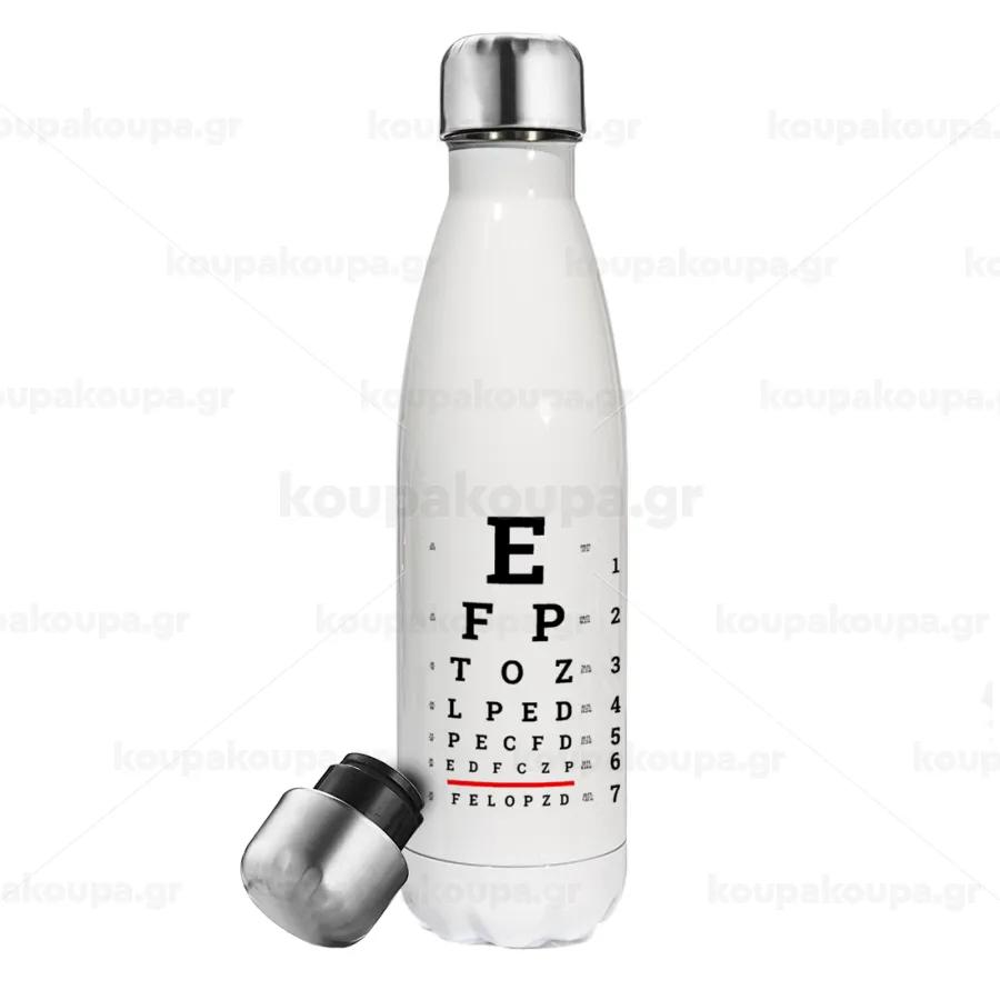 EYE test chart, Μεταλλικό παγούρι θερμός Λευκό (Stainless steel), διπλού τοιχώματος, 500ml