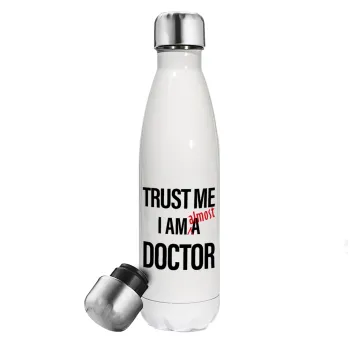 Trust me, i am (almost) Doctor, Μεταλλικό παγούρι θερμός Λευκό (Stainless steel), διπλού τοιχώματος, 500ml
