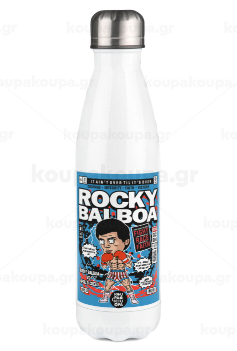 Rocky Balboa, Μεταλλικό παγούρι θερμός Λευκό (Stainless steel), διπλού τοιχώματος, 500ml