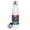 Superman flat, Μεταλλικό παγούρι θερμός Λευκό (Stainless steel), διπλού τοιχώματος, 500ml