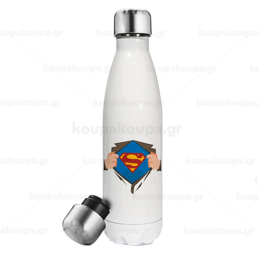 Superman hands, Μεταλλικό παγούρι θερμός Λευκό (Stainless steel), διπλού τοιχώματος, 500ml