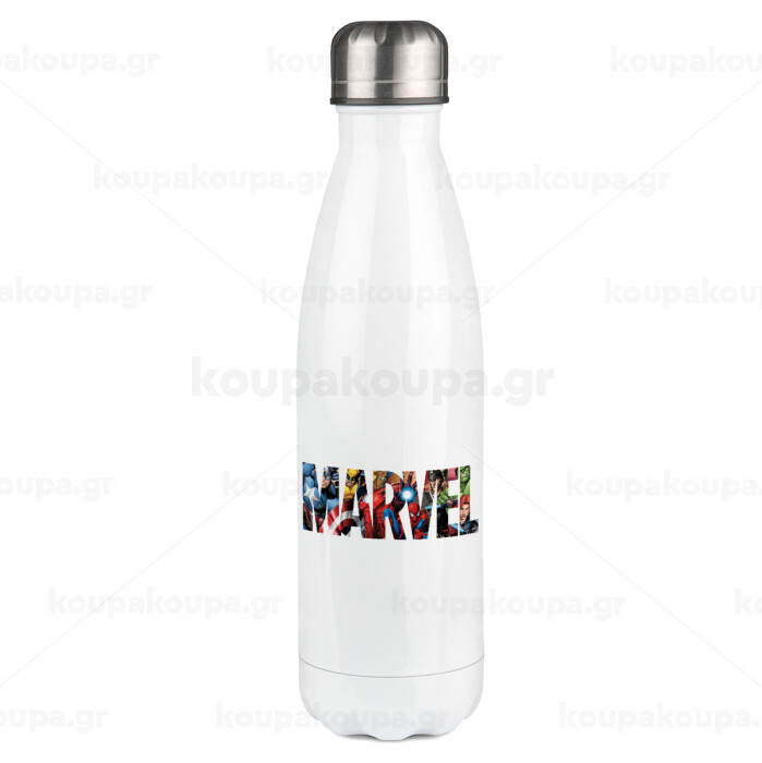 MARVEL characters, Μεταλλικό παγούρι θερμός Λευκό (Stainless steel), διπλού τοιχώματος, 500ml