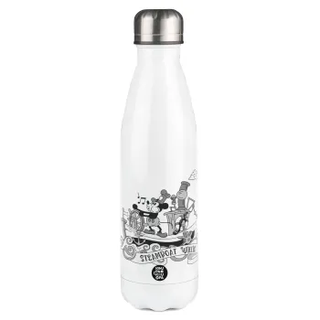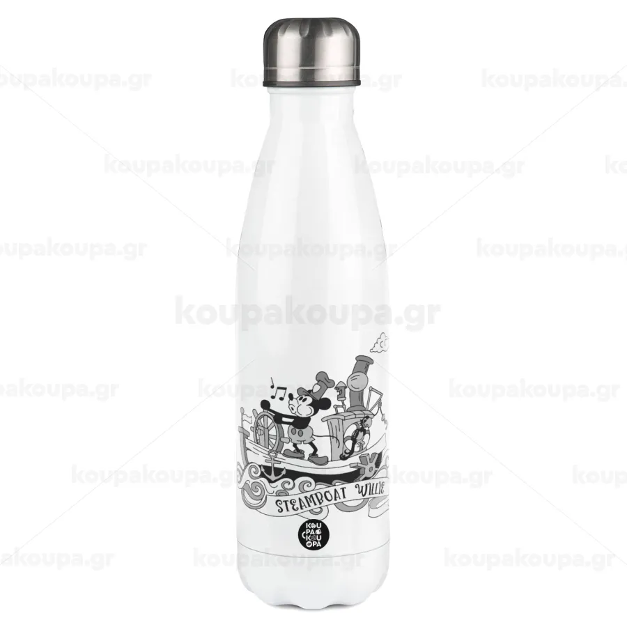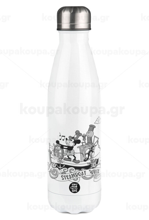 Mickey steamboat, Μεταλλικό παγούρι θερμός Λευκό (Stainless steel), διπλού τοιχώματος, 500ml