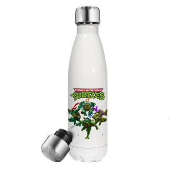 Ninja turtles, Μεταλλικό παγούρι θερμός Λευκό (Stainless steel), διπλού τοιχώματος, 500ml