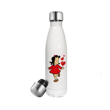 Onepiece logo, Μεταλλικό παγούρι θερμός Λευκό (Stainless steel), διπλού τοιχώματος, 500ml
