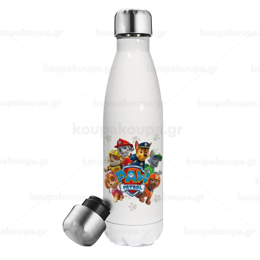 PAW patrol, τα κουτάβια, Μεταλλικό παγούρι θερμός Λευκό (Stainless steel), διπλού τοιχώματος, 500ml
