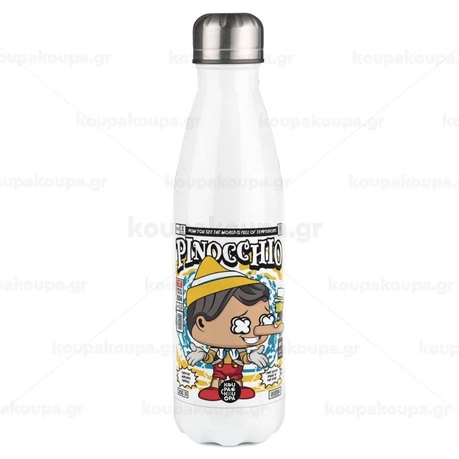 Pinocchio, Μεταλλικό παγούρι θερμός Λευκό (Stainless steel), διπλού τοιχώματος, 500ml