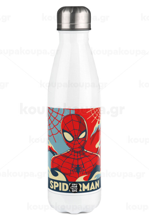 Spiderman kid, Μεταλλικό παγούρι θερμός Λευκό (Stainless steel), διπλού τοιχώματος, 500ml
