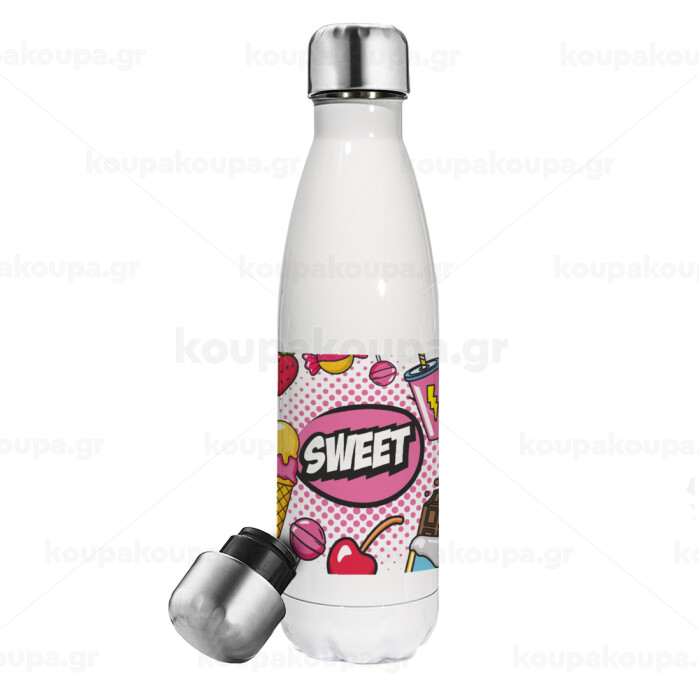 SWEET, Μεταλλικό παγούρι θερμός Λευκό (Stainless steel), διπλού τοιχώματος, 500ml