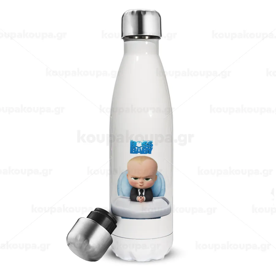 The boss baby, Μεταλλικό παγούρι θερμός Λευκό (Stainless steel), διπλού τοιχώματος, 500ml