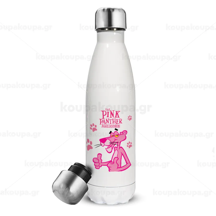 The pink panther, Μεταλλικό παγούρι θερμός Λευκό (Stainless steel), διπλού τοιχώματος, 500ml