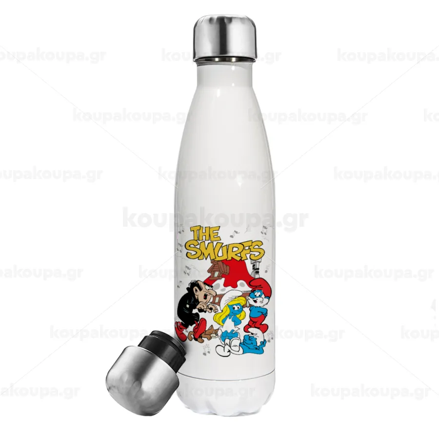 Τα στρουμφάκια, Μεταλλικό παγούρι θερμός Λευκό (Stainless steel), διπλού τοιχώματος, 500ml