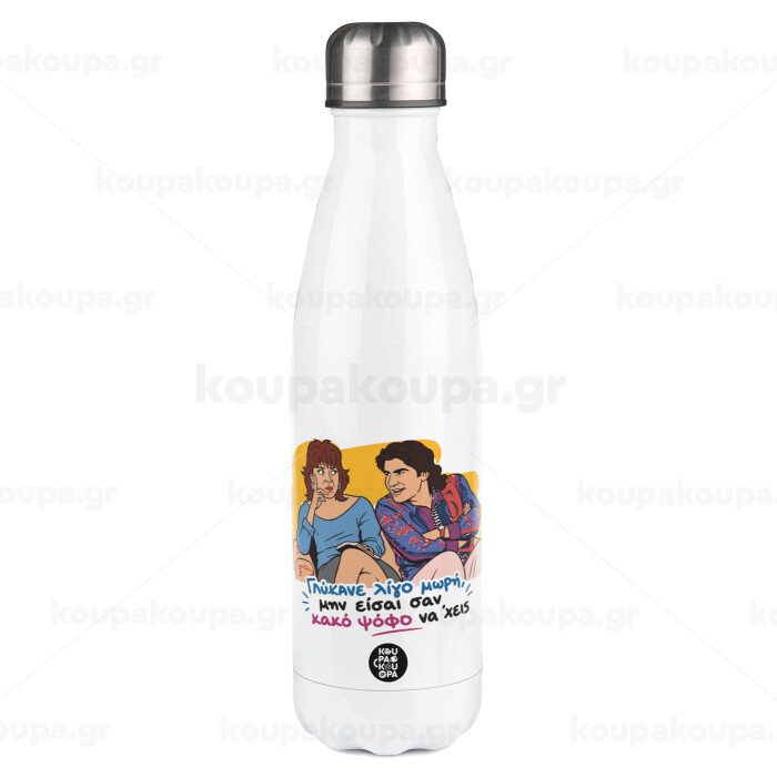 Γλύκανε λίγο, Μεταλλικό παγούρι θερμός Λευκό (Stainless steel), διπλού τοιχώματος, 500ml