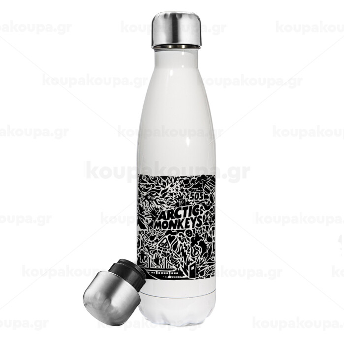 Arctic Monkeys, Μεταλλικό παγούρι θερμός Λευκό (Stainless steel), διπλού τοιχώματος, 500ml