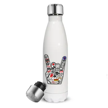 Best Rock Bands hand, Μεταλλικό παγούρι θερμός Λευκό (Stainless steel), διπλού τοιχώματος, 500ml