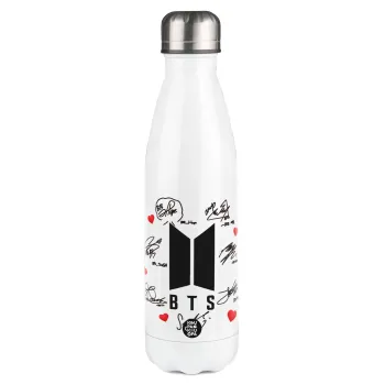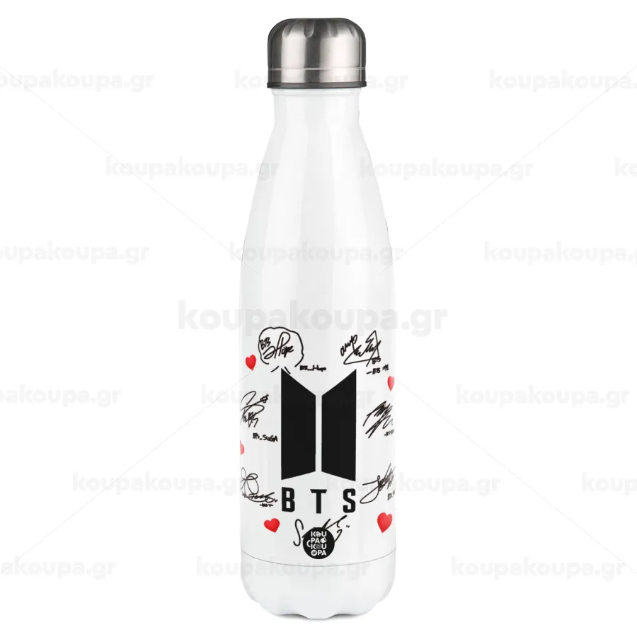 BTS signs, Μεταλλικό παγούρι θερμός Λευκό (Stainless steel), διπλού τοιχώματος, 500ml
