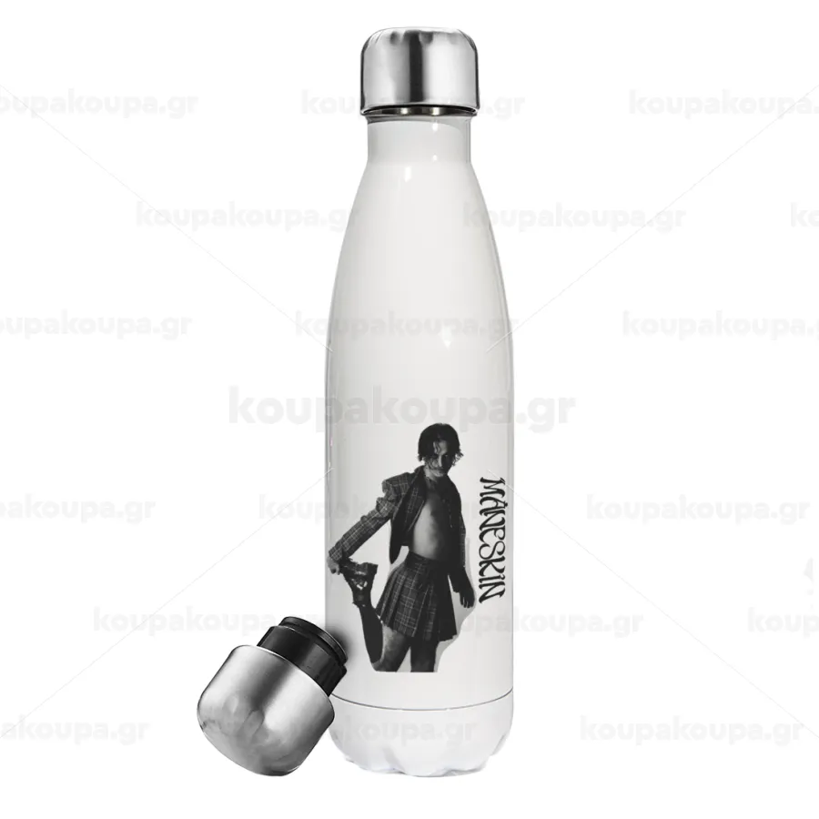 Maneskin Damiano David, Μεταλλικό παγούρι θερμός Λευκό (Stainless steel), διπλού τοιχώματος, 500ml