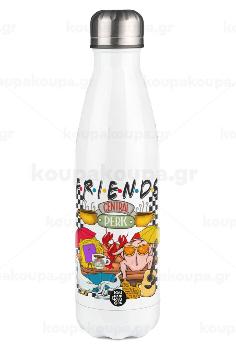 Τα φιλαράκια, Μεταλλικό παγούρι θερμός Λευκό (Stainless steel), διπλού τοιχώματος, 500ml