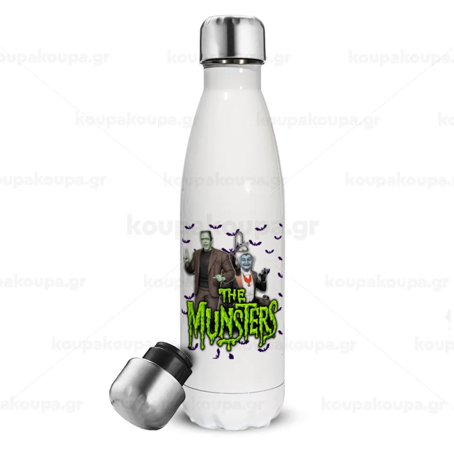 The munsters, Μεταλλικό παγούρι θερμός Λευκό (Stainless steel), διπλού τοιχώματος, 500ml
