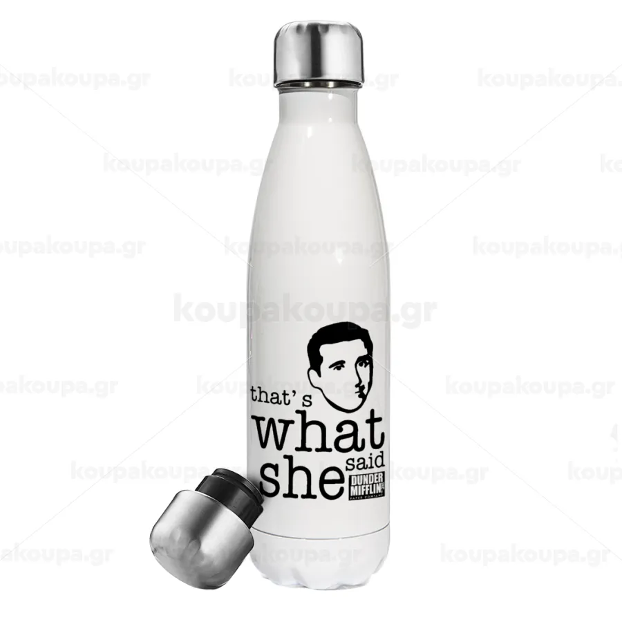 The office Michael That's what she said, Μεταλλικό παγούρι θερμός Λευκό (Stainless steel), διπλού τοιχώματος, 500ml