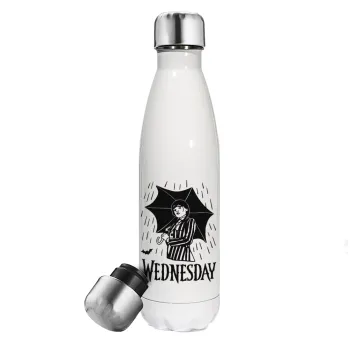 Wednesday Addams, Μεταλλικό παγούρι θερμός Λευκό (Stainless steel), διπλού τοιχώματος, 500ml