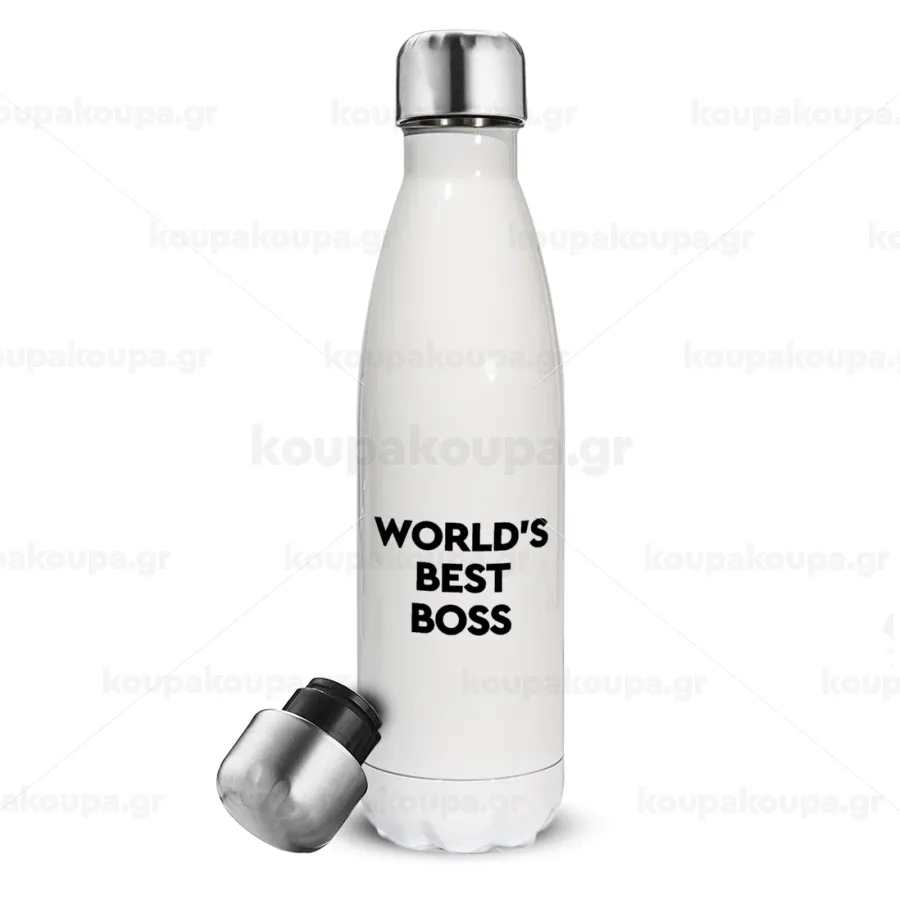 World's best boss, Μεταλλικό παγούρι θερμός Λευκό (Stainless steel), διπλού τοιχώματος, 500ml