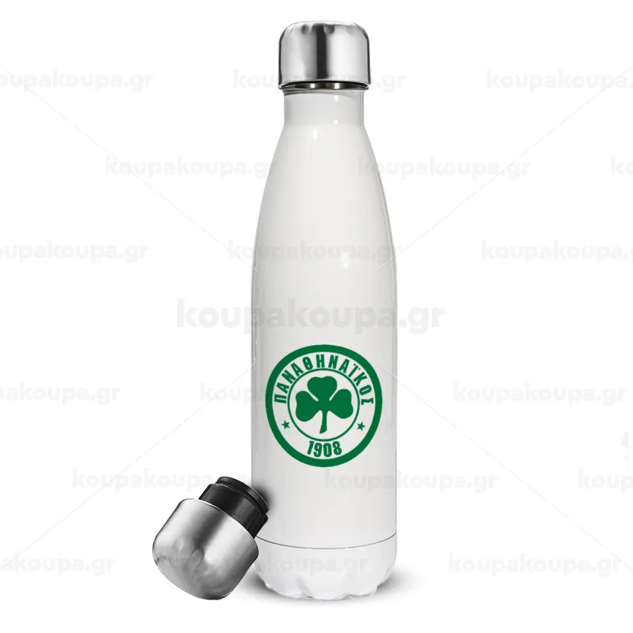 ΠΑΟ Παναθηναϊκός, Μεταλλικό παγούρι θερμός Λευκό (Stainless steel), διπλού τοιχώματος, 500ml
