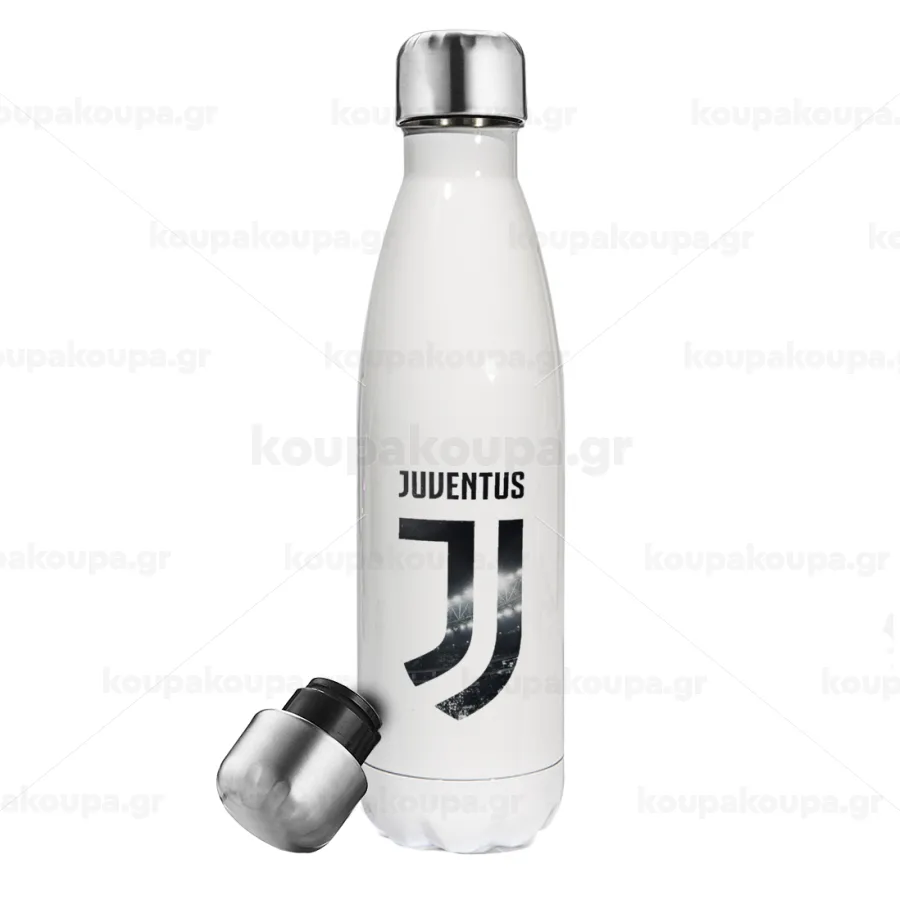 FC Juventus, Μεταλλικό παγούρι θερμός Λευκό (Stainless steel), διπλού τοιχώματος, 500ml