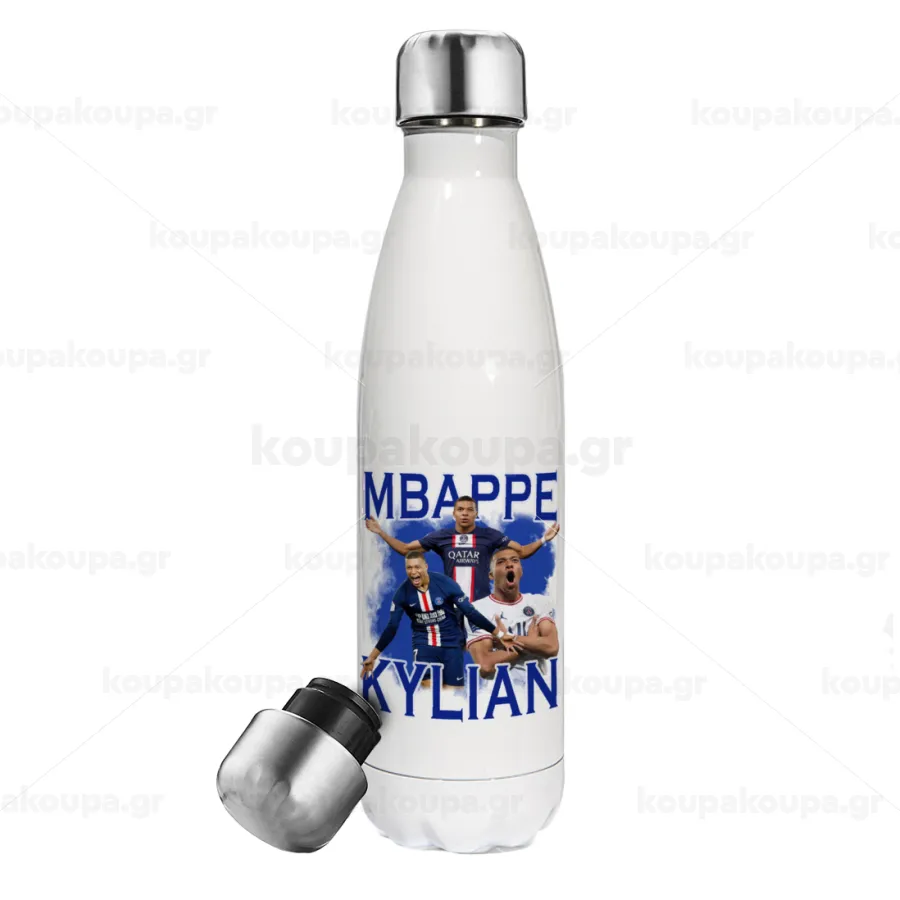 Kylian mbappe, Μεταλλικό παγούρι θερμός Λευκό (Stainless steel), διπλού τοιχώματος, 500ml