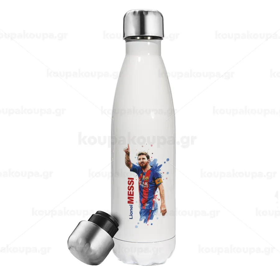 Λιονέλ Μέσι, Μεταλλικό παγούρι θερμός Λευκό (Stainless steel), διπλού τοιχώματος, 500ml