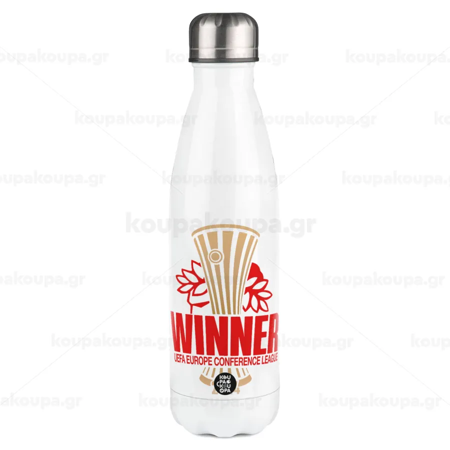 Europa Conference League WINNER, Μεταλλικό παγούρι θερμός Λευκό (Stainless steel), διπλού τοιχώματος, 500ml