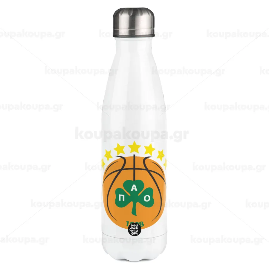 ΠΑΟ BC, Μεταλλικό παγούρι θερμός Λευκό (Stainless steel), διπλού τοιχώματος, 500ml