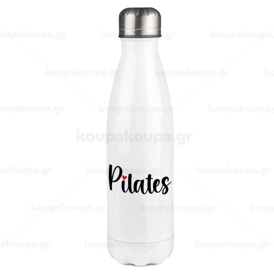 Pilates love, Μεταλλικό παγούρι θερμός Λευκό (Stainless steel), διπλού τοιχώματος, 500ml