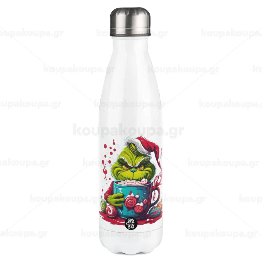 Giggling Grinchy Galore, Μεταλλικό παγούρι θερμός Λευκό (Stainless steel), διπλού τοιχώματος, 500ml
