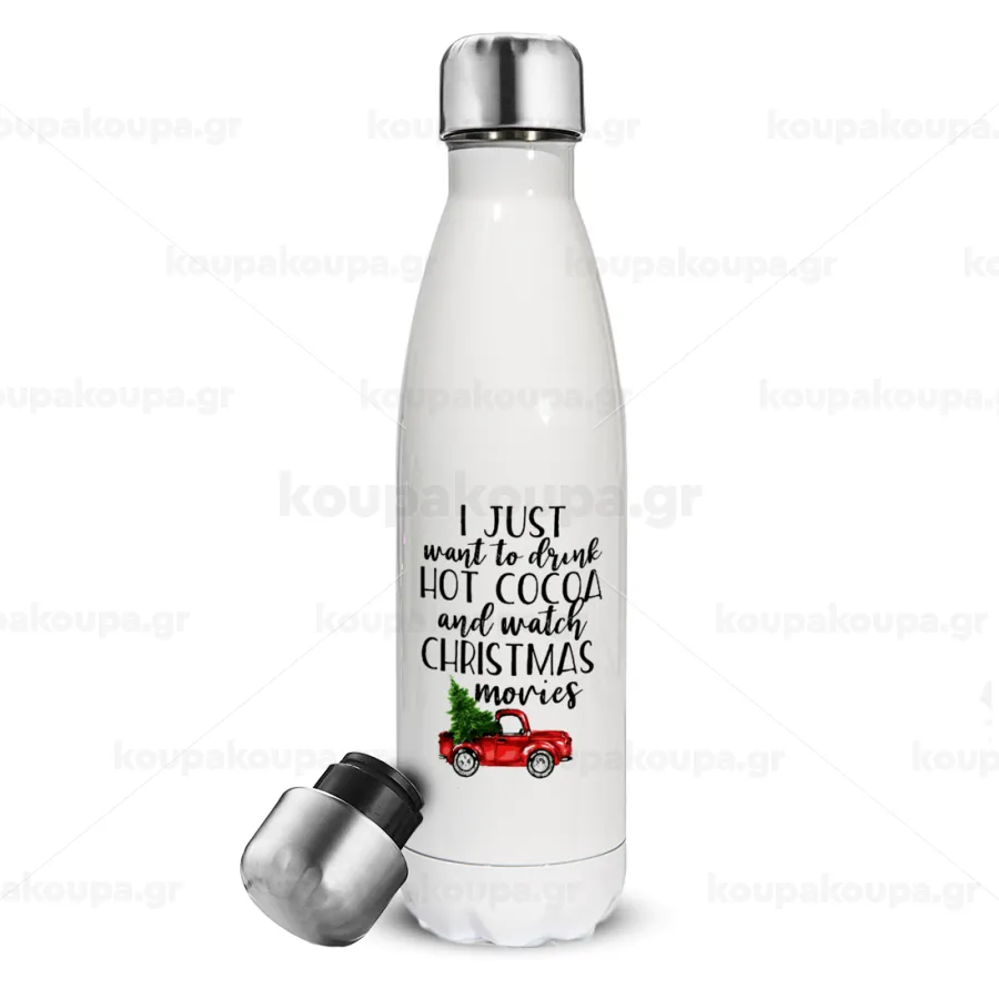 I just want to drink hot cocoa and watch christmas movies pickup car, Μεταλλικό παγούρι θερμός Λευκό (Stainless steel), διπλού τοιχώματος, 500ml