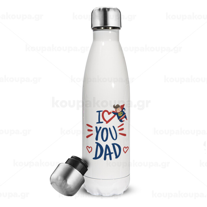 Super Dad, Μεταλλικό παγούρι θερμός Λευκό (Stainless steel), διπλού τοιχώματος, 500ml