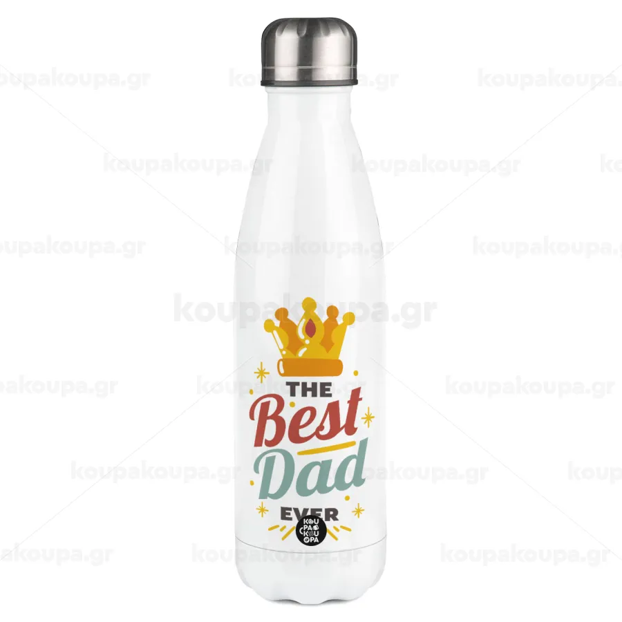 The Best DAD ever, Μεταλλικό παγούρι θερμός Λευκό (Stainless steel), διπλού τοιχώματος, 500ml