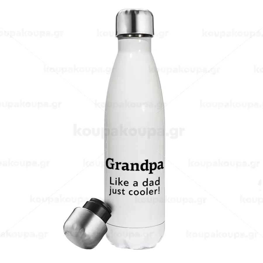 Grandpa, like a dad, just cooler, Μεταλλικό παγούρι θερμός Λευκό (Stainless steel), διπλού τοιχώματος, 500ml