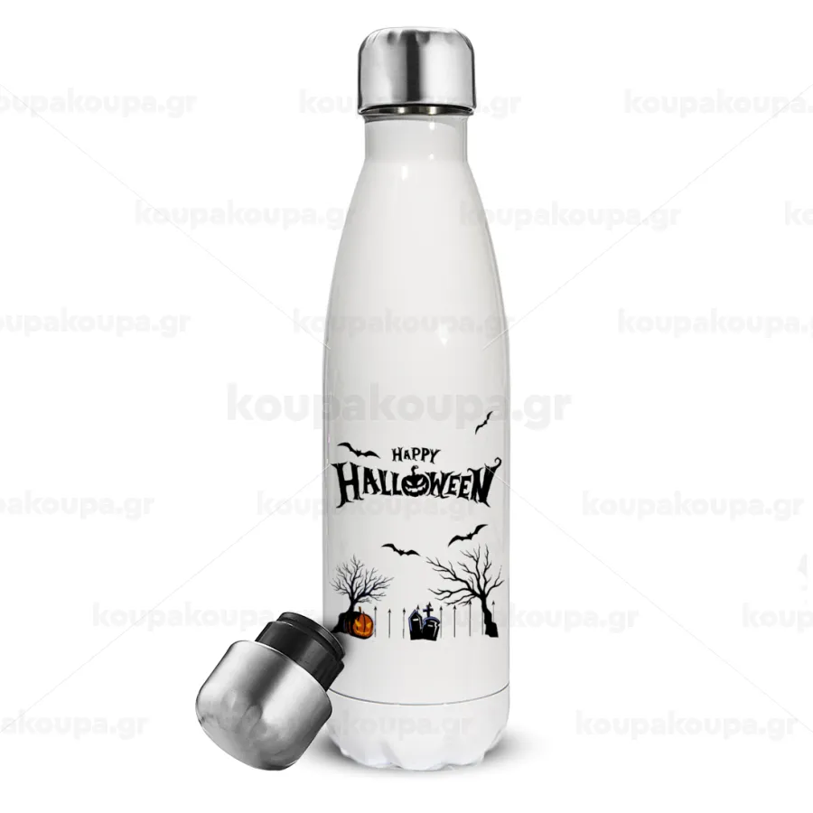Happy Halloween cemetery, Μεταλλικό παγούρι θερμός Λευκό (Stainless steel), διπλού τοιχώματος, 500ml