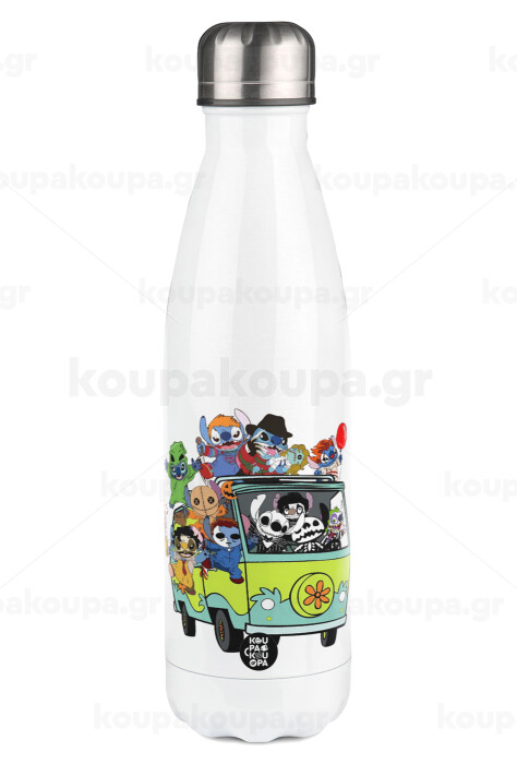 Stitch Halloween scooby car, Μεταλλικό παγούρι θερμός Λευκό (Stainless steel), διπλού τοιχώματος, 500ml