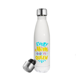 Μεταλλικό παγούρι θερμός Λευκό (Stainless steel), διπλού τοιχώματος, 500ml με θέμα Η ημέρα της μητέρας