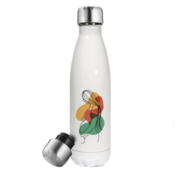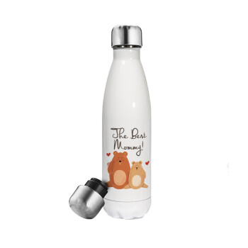 I LOVE MOM, Μεταλλικό παγούρι θερμός Λευκό (Stainless steel), διπλού τοιχώματος, 500ml