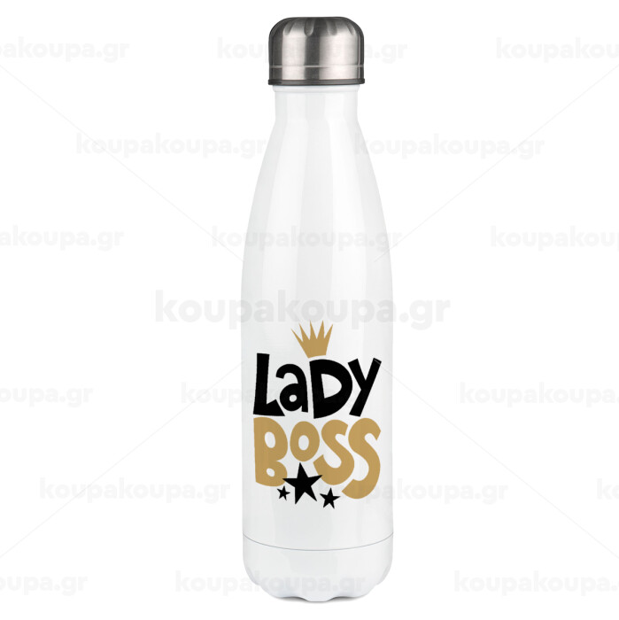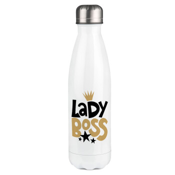 Lady Boss, Μεταλλικό παγούρι θερμός Λευκό (Stainless steel), διπλού τοιχώματος, 500ml